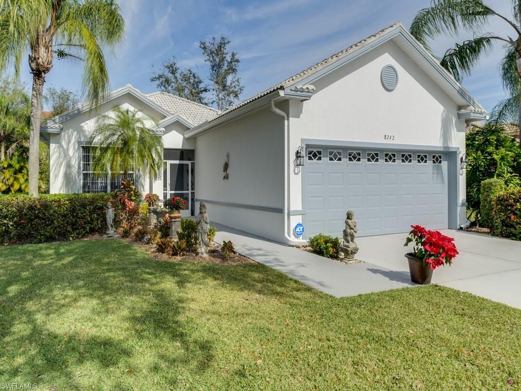 Presenting the only home currently for sale in Laurel Lakes AND it is priced to sell quickly!! This 1519 sqft POOL home features 3 bedrooms 2 full baths and a 2 car garage. With abundant light, vaulted ceilings & double French doors which open to the lanai, the great room perfectly showcases the saltwater pool & its serene spa-like setting from the moment you enter. The spacious kitchen has newer appliances, a breakfast nook, and a formal dining area. The main living area of the home has diagonal tile and crown moldings and there are white vertical blinds throughout. Relax in the master suite with en-suite bath, his & hers closets, and private entrance to the screened lanai and pool area. The back yard is completely fenced for privacy and safety, and the home comes with clear hurricane shutter protection. With its convenient location in fast-growing North Naples, Laurel Lakes is a well maintained gated community with nice amenities and low HOA fees zoned for and minutes away from Laurel Oak Elementary, Oakridge, and Gulf Coast High. Publix, shopping, dining and other retail is nearby, as well as easy access to I-75 and a roughly 7 mile drive to the beach.